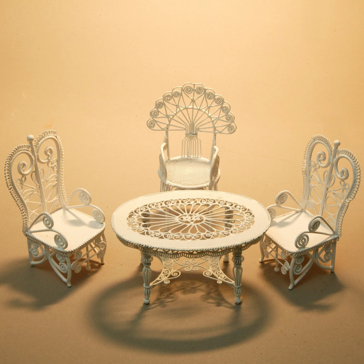 Victorian White Wire Table Amp Peacock Patio Chairs Miniature Dollhouse 1 12 Ebay