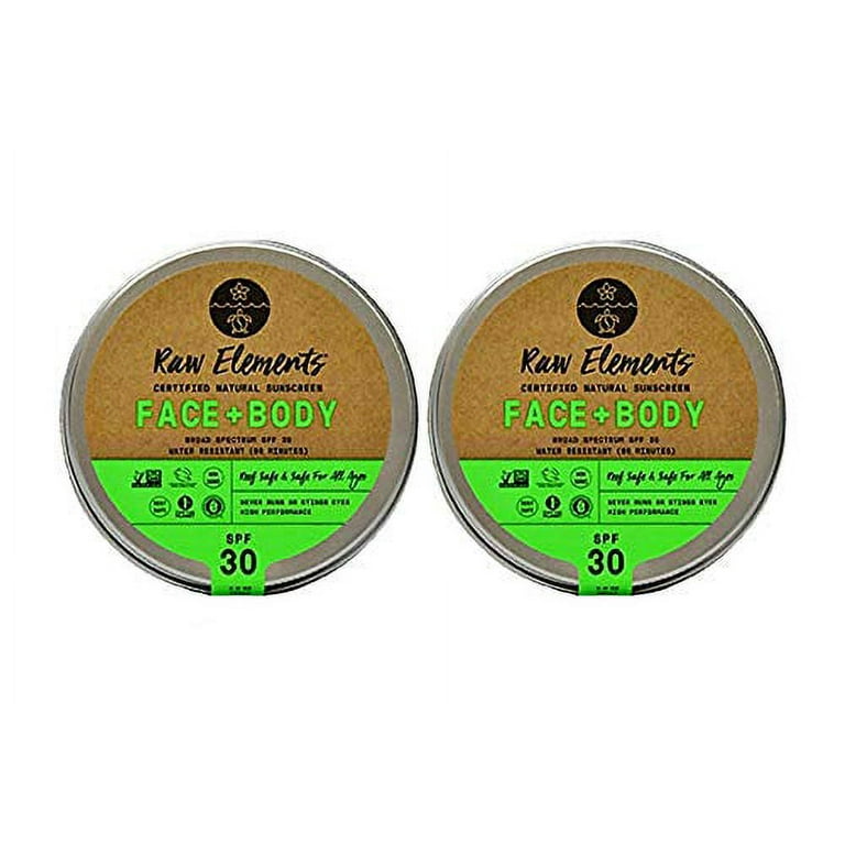 Raw Elements Face And Body Certified Natural Sunscreen Non Nano Zinc Oxide 95 Organic Water Resistant Reef Safe Cruelty Free Spf 30 All Ages Safe Moisturizing Reusable Tin 3oz 2 Pac Walmart Com